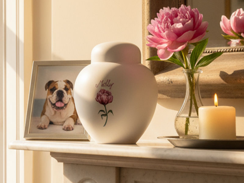 Välj bland vackra urnor i porslin, trä eller terrakotta – noggrant utformade för att bevara minnet av din trogna vän med värdighet.