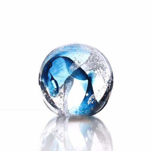 Inuti glaset smälts askan varsamt in och bildar unika mönster, där varje ängel blir helt egen – precis som minnena den representerar. De mjuka skiftningarna och det levande uttrycket fångar något av det band som aldrig försvinner.
